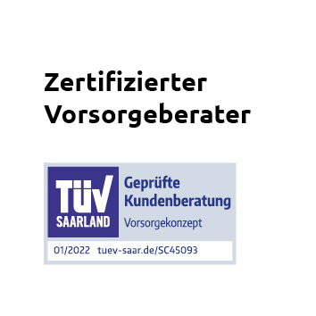 Als TÜV zertifizierter Vorsorgeberater kann ich Ihnen eine hohe Beratungsqualität garantieren.